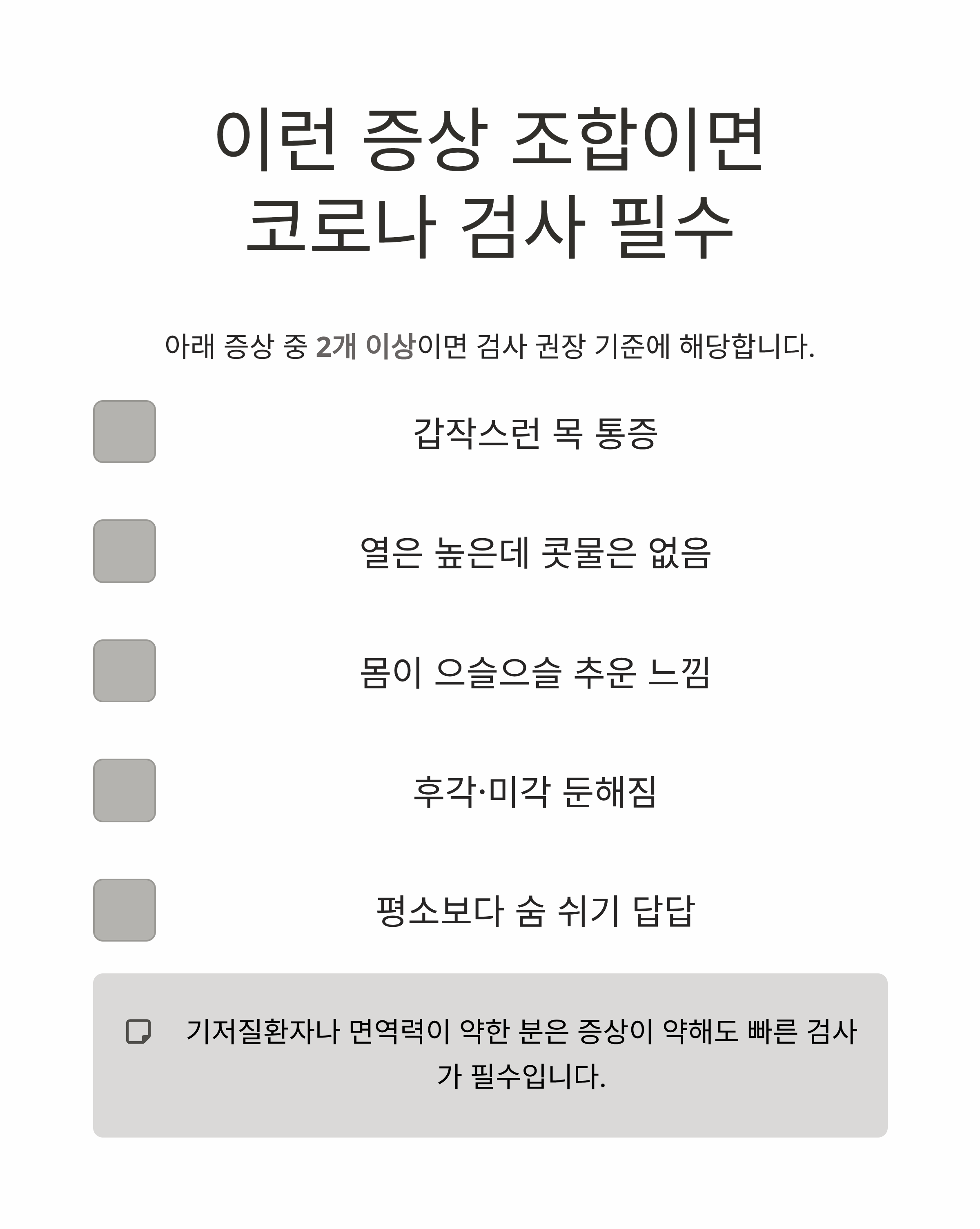 3️⃣ 이런 증상 조합이면 코로나 검사 필수