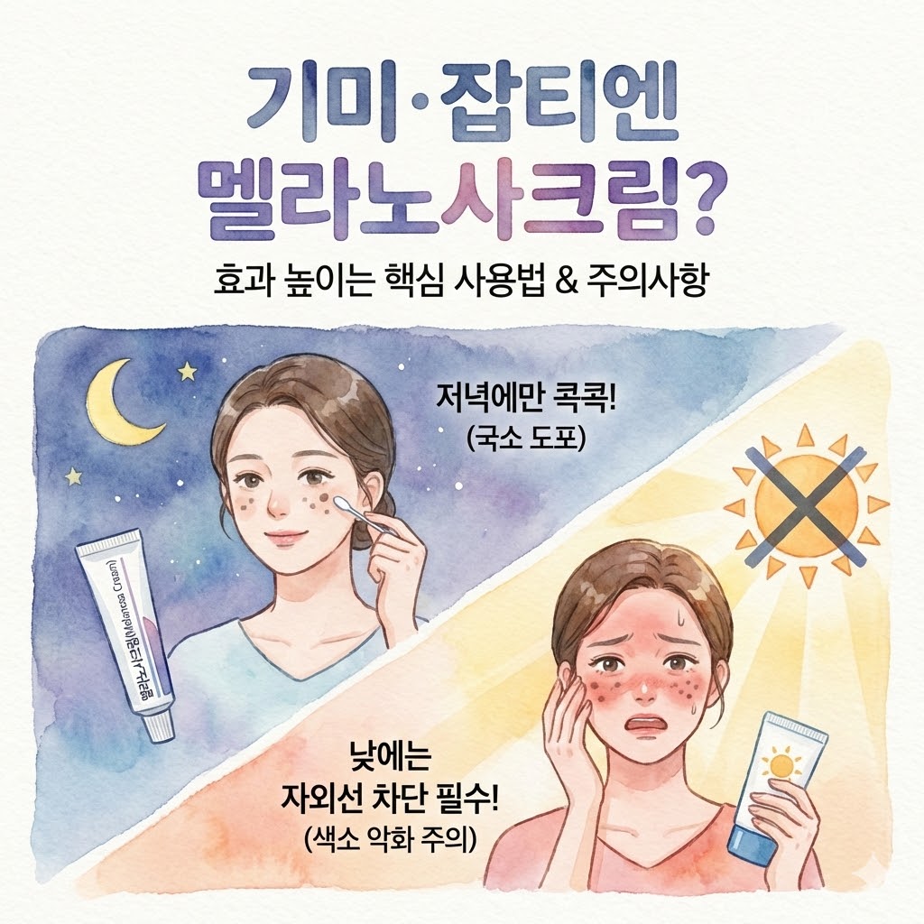 멜라노사크림은 바르는 양과 타이밍이 효과와 자극 여부에 직접적인 영향을 줄 수 있습니다.