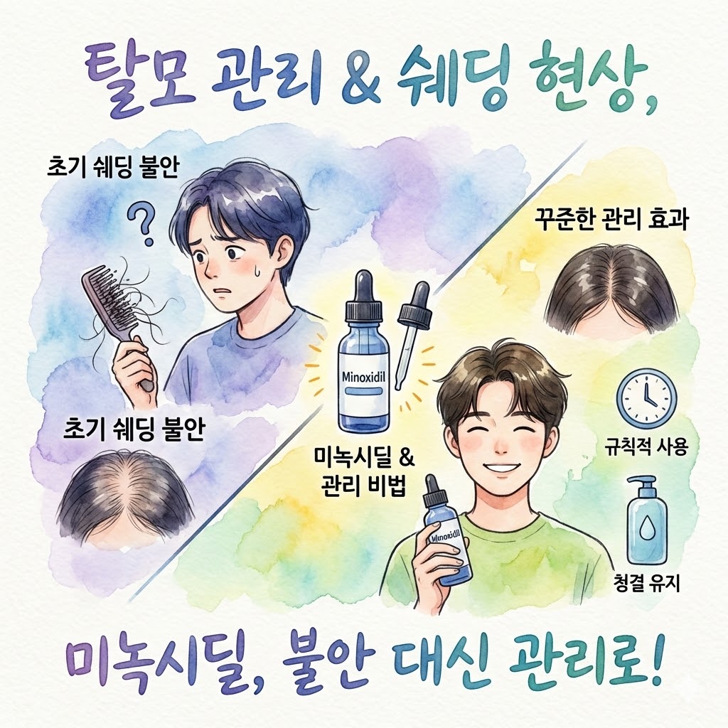 특히 쉐딩 현상 은 미녹시딜을 처음 접하는 사람들에게 가장 큰 고민 포인트로 꼽힙니다.