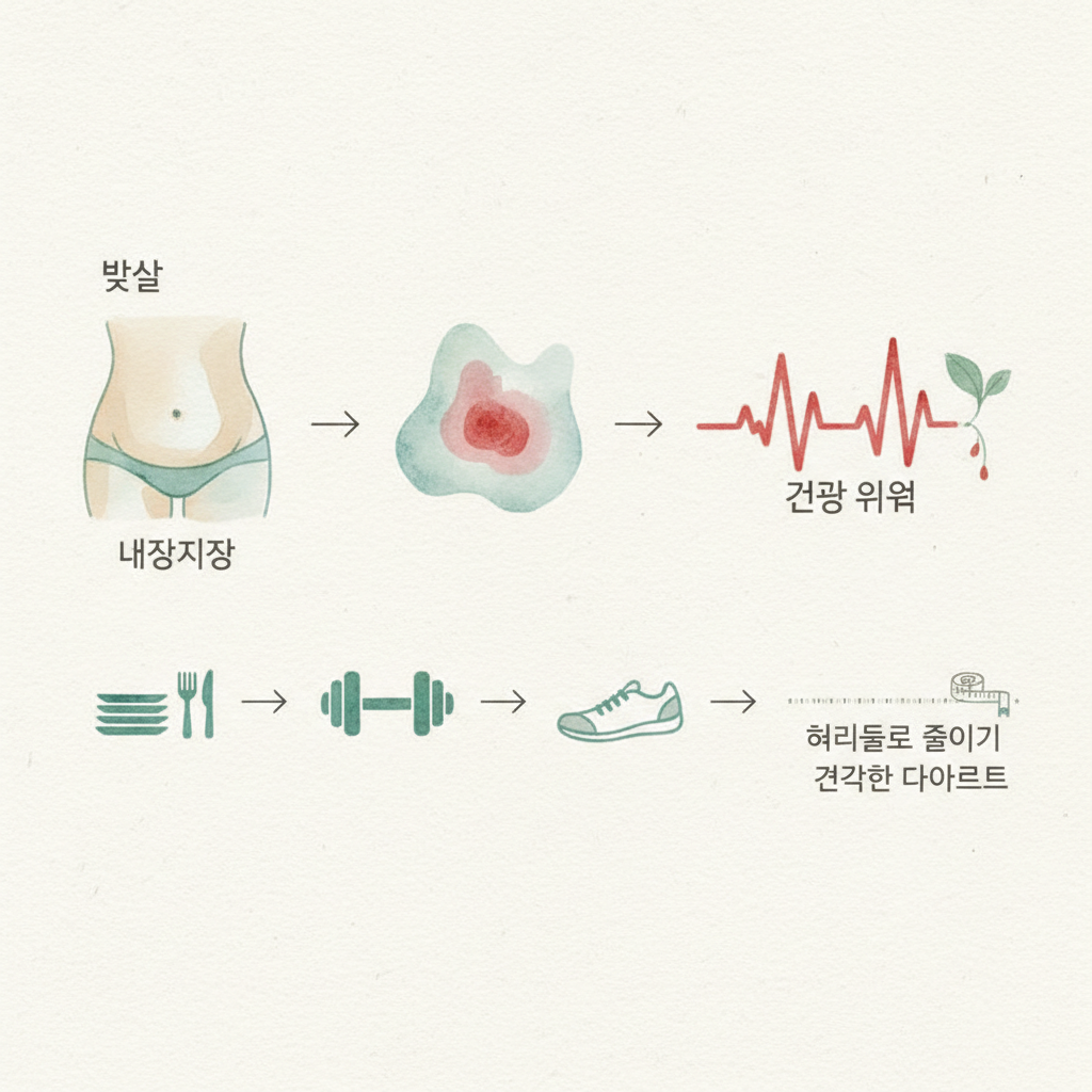 많은 분들이 뱃살을 미용상의 문제로만 생각합니다. 하지만 겉으로 드러나는 피상적인 뱃살 아래, 우리 건강을 묵묵히 위협하는 '내장지방'이 있을 수 있다는 사실, 알고 계셨나요? 특히 다이어트에도 불구하고 좀처럼 줄지 않는 뱃살은 내장지방이 쌓이고 있다는 강력한 신호일 수 있습니다. 이 글을 통해 내장지방의 위험성을 제대로 이해하고, 뱃살이 안 빠지는 진짜 이유를 파악하여 건강한 다이어트에 성공하는 실질적인 방법을 얻어가시길 바랍니다.