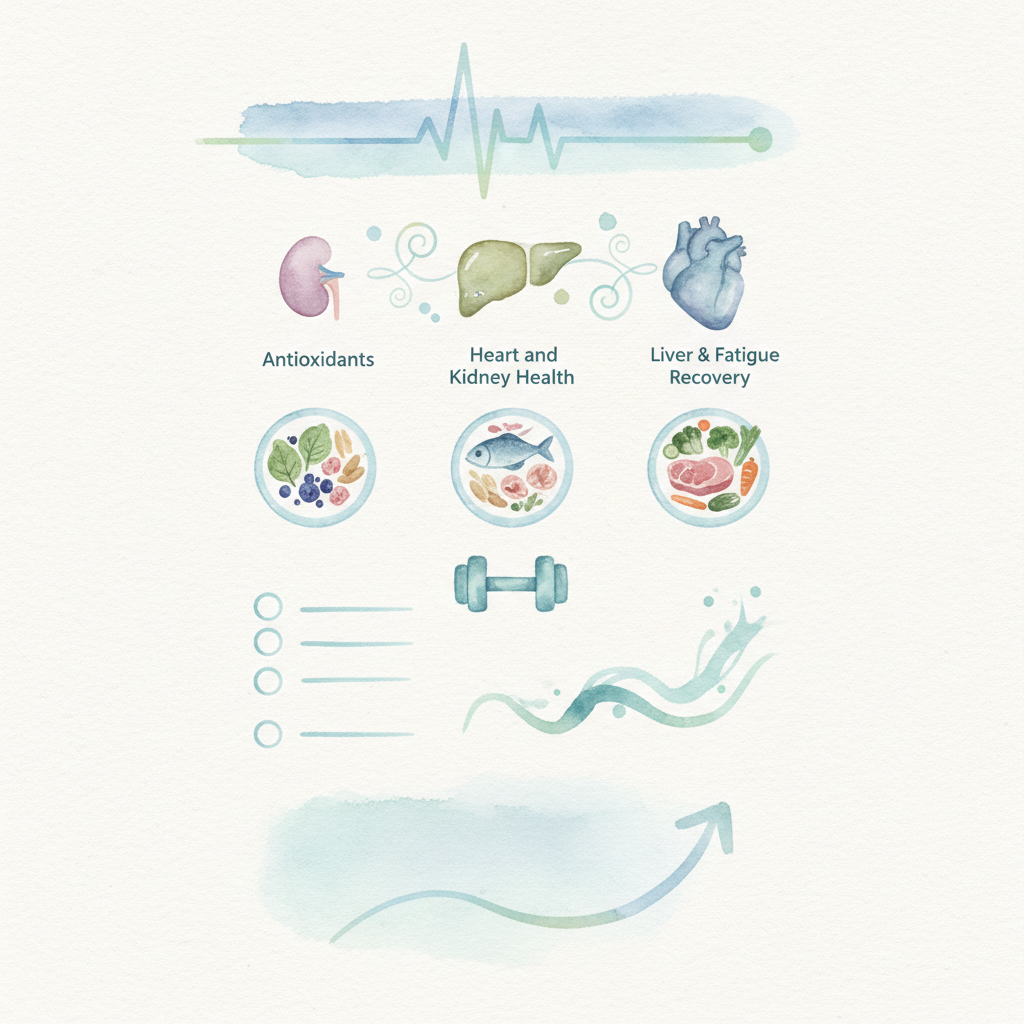 만성 피로를 느끼거나 전반적인 활력이 떨어진다고 느껴질 때, 우리 몸은 산화 스트레스에 시달리고 있을 수 있습니다. 항산화 식품은 이러한 산화 스트레스를 줄여주고 세포 손상을 막아 피로 회복에 도움을 줍니다. 이러한 항산화 식품들은 신장, 간, 심장 건강에도 긍정적인 영향을 미칩니다.