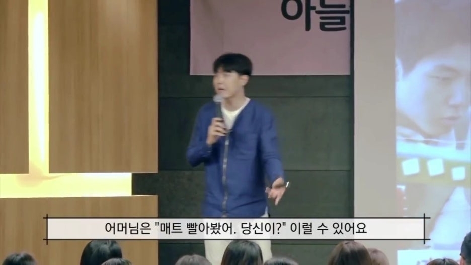 그때 엄마의 반응은 어떨까요? 소장님이 '매트 빨아봤어 당신이?!' 라고 외치시는데,