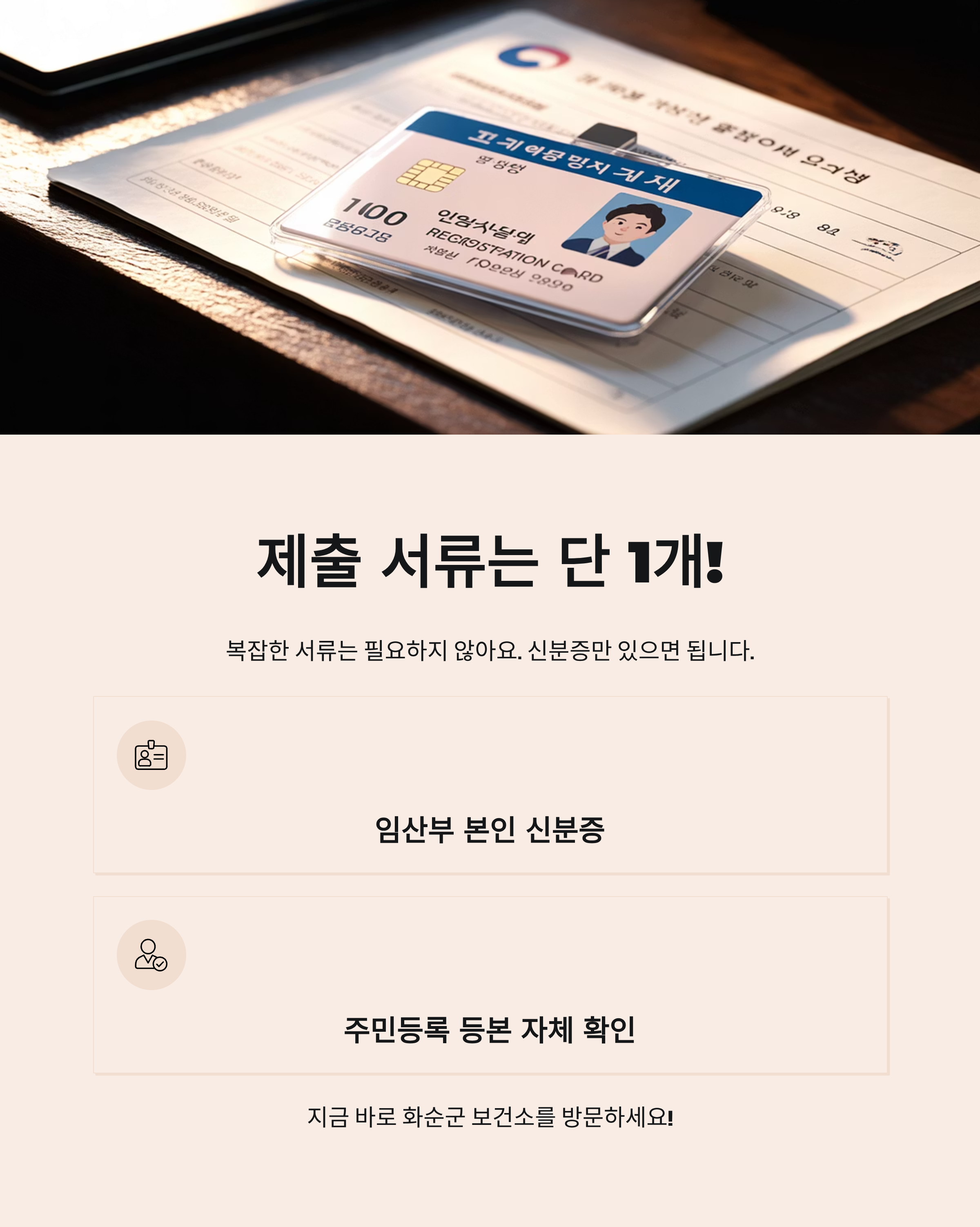 지원 대상은 단 한 가지 조건만 충족하면 됩니다. 화순군 보건소에 등록된 임산부라면 누구나 신청 가능해요.